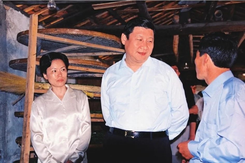 2002年4月,習(xí)近平在福建省南平市光澤縣華橋鄉(xiāng)吳屯村茶山調(diào)研。(圖源:《習(xí)近平在福建》)