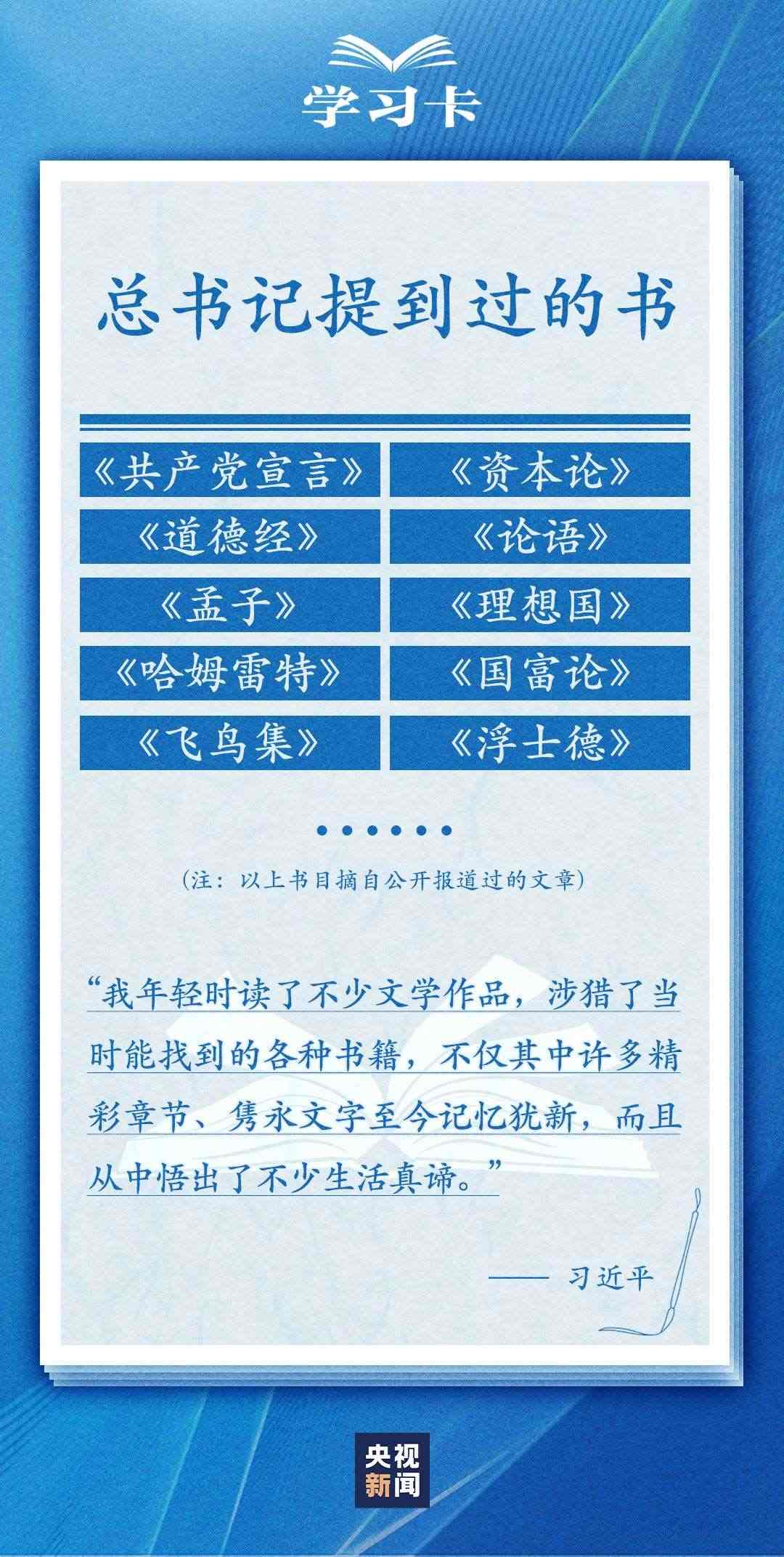 今天(4月23日)是世界讀書(shū)日。習(xí)近平曾多次講述和書(shū)籍的不解之緣,分享讀書(shū)學(xué)習(xí)的感悟,倡導(dǎo)“愛(ài)讀書(shū)、讀好書(shū)、善讀書(shū)”。書(shū)的魅力何在,為何要“愛(ài)讀書(shū)”?如何能“選好書(shū)”?怎樣“善讀書(shū)”?一起學(xué)習(xí)↓