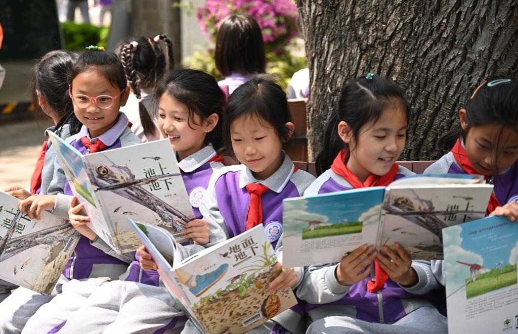 圖為清華附小校園里孩子們?cè)跇?shù)下讀書(shū)。采訪對(duì)象供圖
