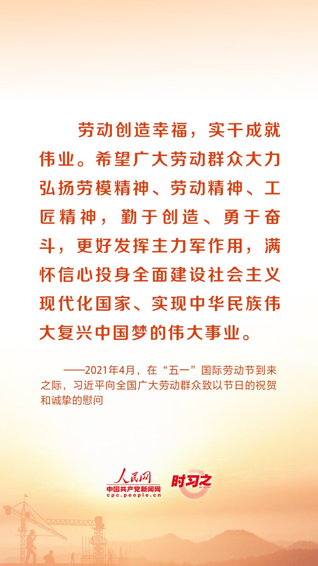 人民創(chuàng)造歷史,勞動(dòng)開創(chuàng)未來。黨的十八大以來,習(xí)近平總書記始終心系全國(guó)廣大勞動(dòng)者,激勵(lì)廣大勞動(dòng)者在平凡崗位上續(xù)寫不平凡的故事。在“五一”國(guó)際勞動(dòng)節(jié)到來之際,讓我們重溫總書記的諄諄話語(yǔ),用辛勤勞動(dòng)為經(jīng)濟(jì)社會(huì)發(fā)展貢獻(xiàn)力量。