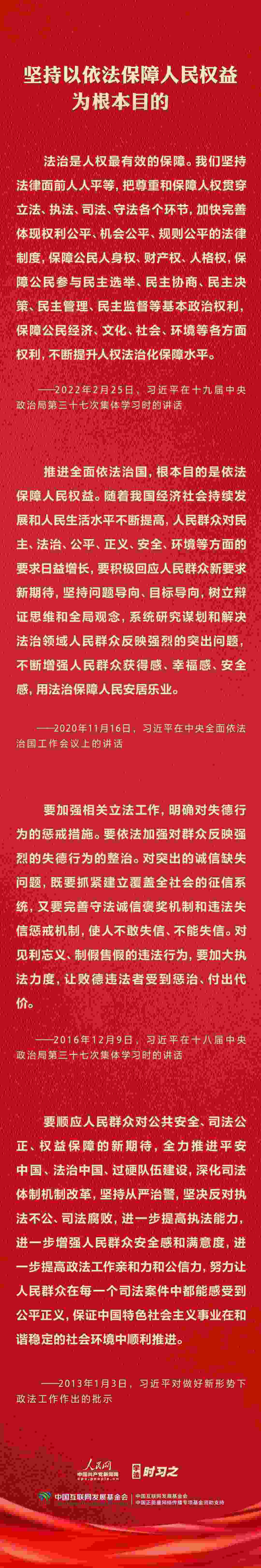 今年是貫徹落實(shí)黨的二十大精神的開(kāi)局之年。中共中央政治局決定從今年4月開(kāi)始,在全黨自上而下開(kāi)展學(xué)習(xí)貫徹習(xí)近平新時(shí)代中國(guó)特色社會(huì)主義思想主題教育。習(xí)近平法治思想是習(xí)近平新時(shí)代中國(guó)特色社會(huì)主義思想的重要組成部分,人民網(wǎng)·中國(guó)共產(chǎn)黨新聞網(wǎng)推出學(xué)法時(shí)習(xí)之·學(xué)習(xí)習(xí)近平法治思想系列策劃,本篇聚焦“堅(jiān)持以人民為中心”。