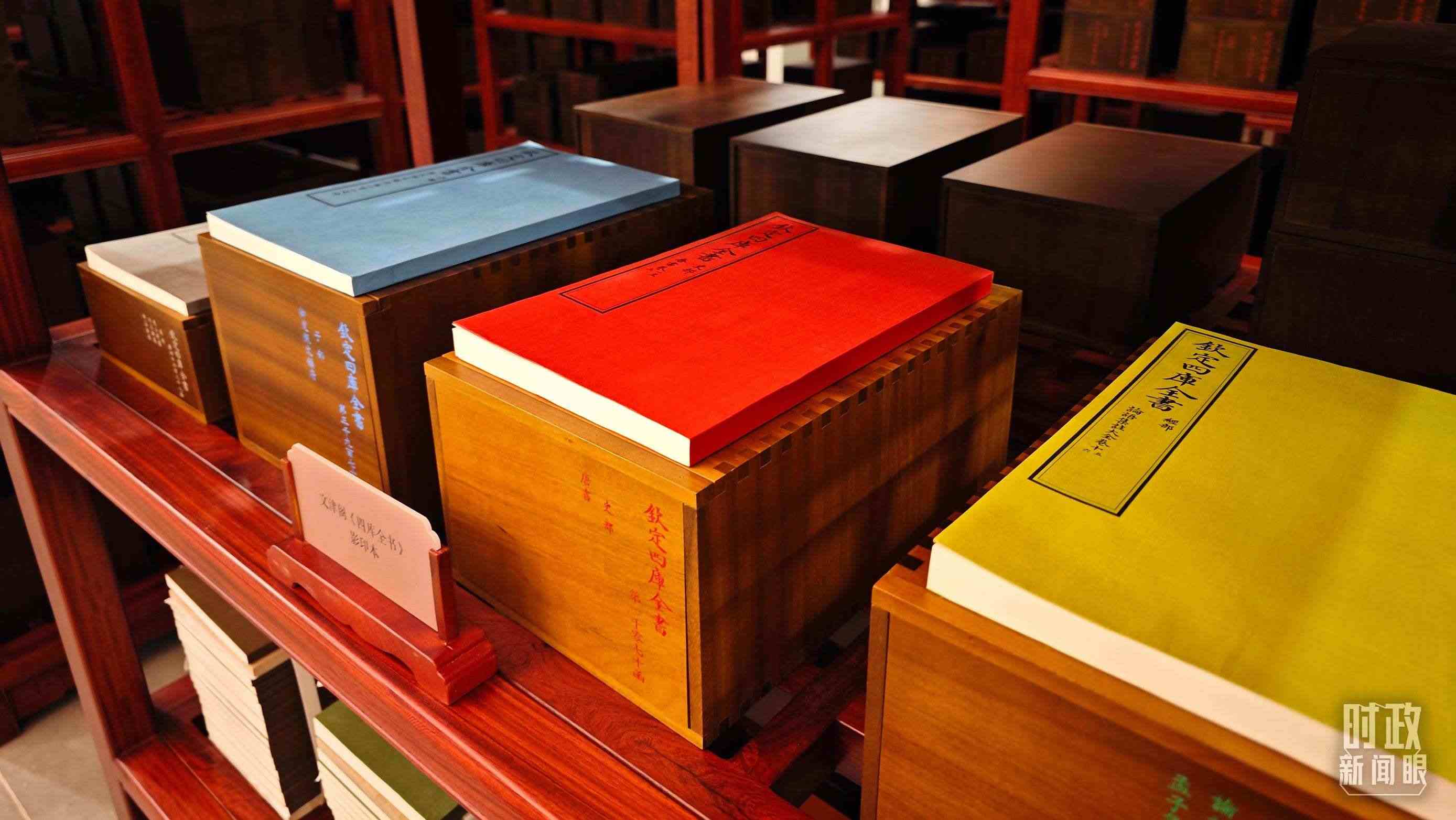 △中國國家版本館內(nèi)藏品,《四庫全書》。(總臺央視記者韓銳拍攝)
