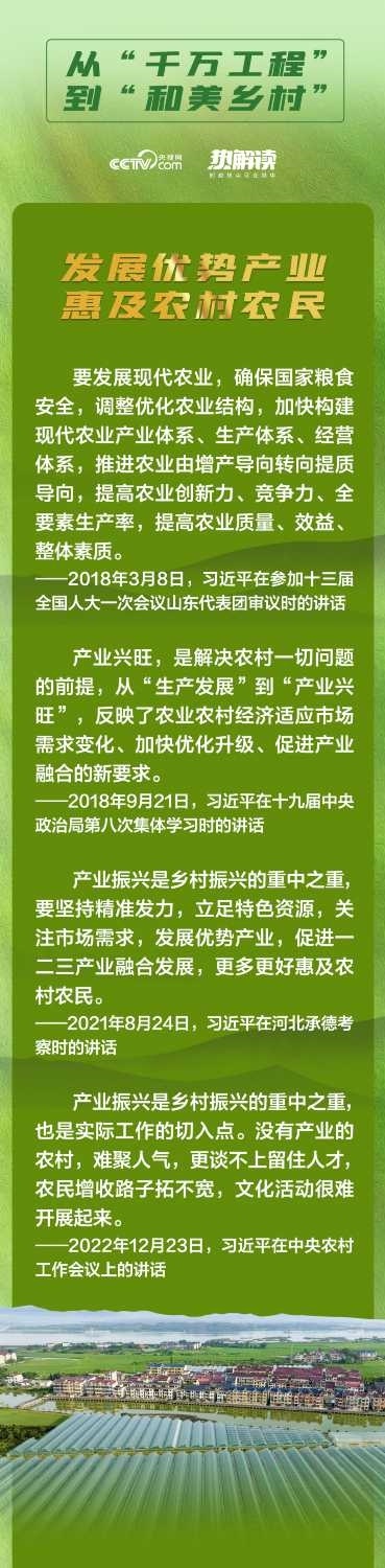 央視網(wǎng)《熱解讀》欄目特別策劃“從‘千萬工程’到‘和美鄉(xiāng)村’”系列解讀文章,緊扣鄉(xiāng)村振興戰(zhàn)略“產(chǎn)業(yè)興旺、生態(tài)宜居、鄉(xiāng)風(fēng)文明、治理有效、生活富?!笨傄?,全面展現(xiàn)新時代中國多措并舉建設(shè)宜居宜業(yè)和美鄉(xiāng)村的生動實踐。