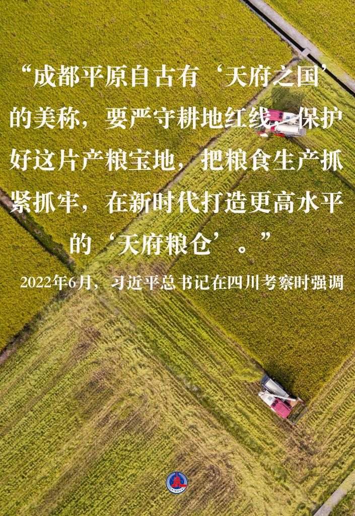 2022年6月,習(xí)近平總書(shū)記在四川考察時(shí)強(qiáng)調(diào),“成都平原自古有‘天府之國(guó)’的美稱(chēng),要嚴(yán)守耕地紅線,保護(hù)好這片產(chǎn)糧寶地,把糧食生產(chǎn)抓緊抓牢,在新時(shí)代打造更高水平的‘天府糧倉(cāng)’”。
