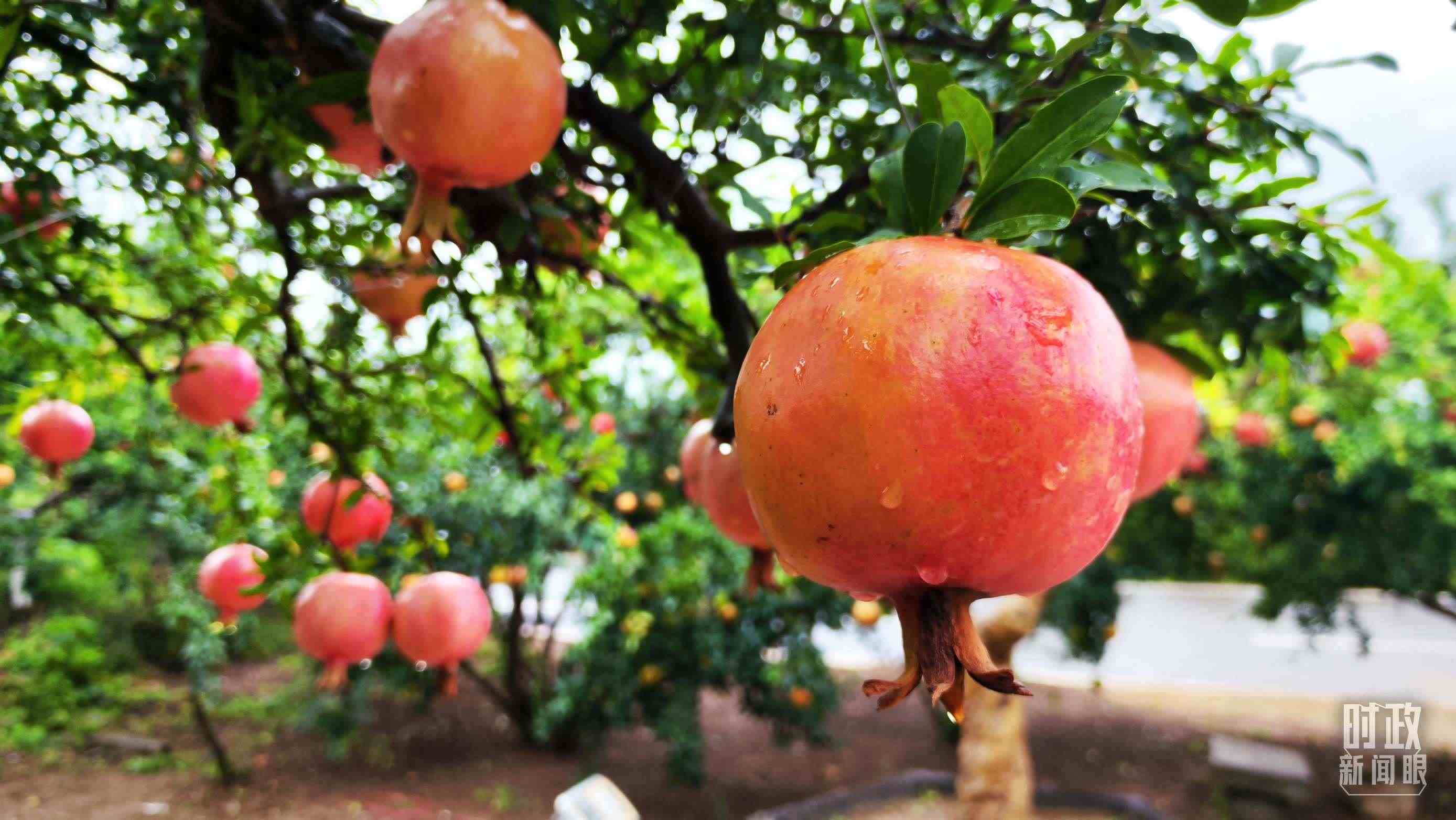 △一場秋雨過后,石榴更顯晶瑩。(總臺央視記者李輝、范一鳴拍攝)