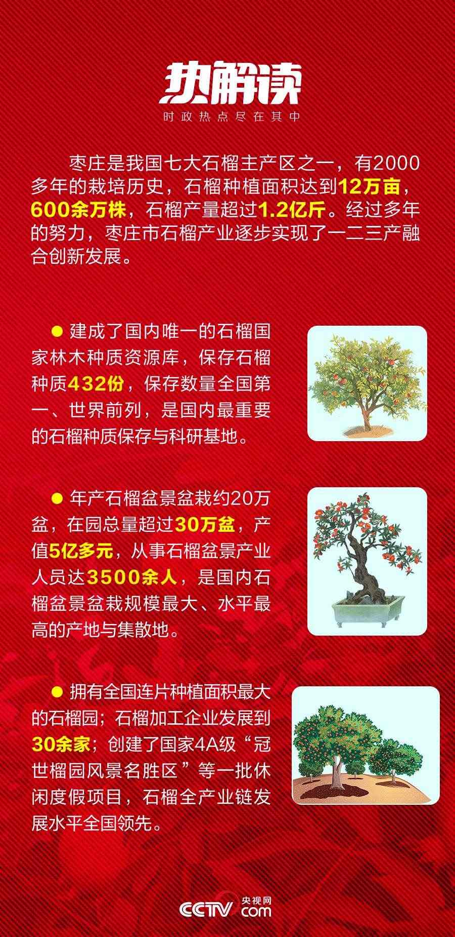 歷經(jīng)千年,當(dāng)年自異域“舶來(lái)”的奇珍異果,已經(jīng)成為遍地開(kāi)花的致富果、幸福果。山東棗莊火紅的石榴給這座小城帶來(lái)了紅火的發(fā)展機(jī)遇,也給老百姓帶來(lái)了紅火的生活。