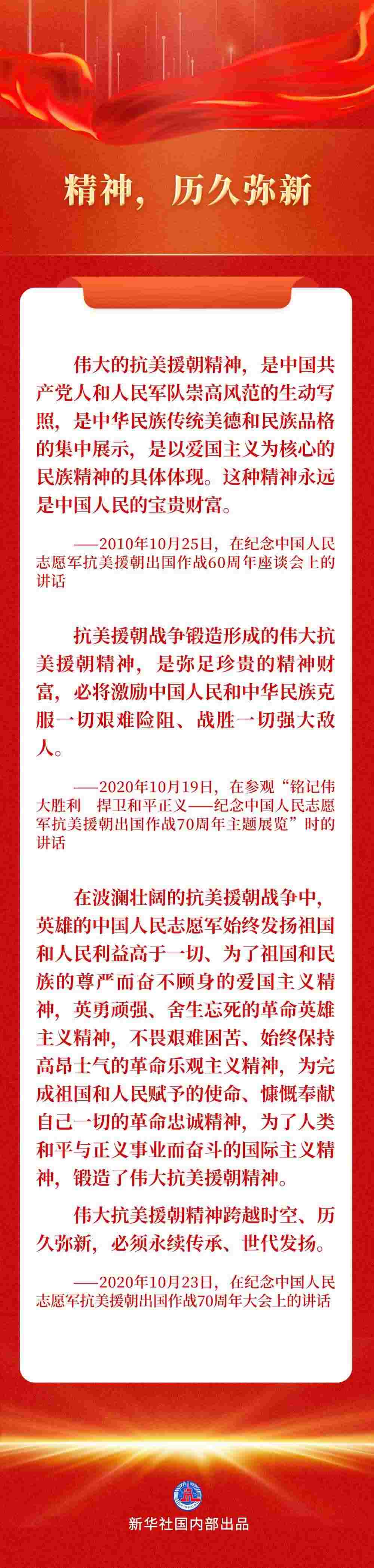 習(xí)近平總書(shū)記曾多次談起這段氣壯山河的英雄史詩(shī),深情講述這些“最可愛(ài)的人”的動(dòng)人故事,以史為鑒,為全黨全軍全國(guó)各族人民指明前行方向。