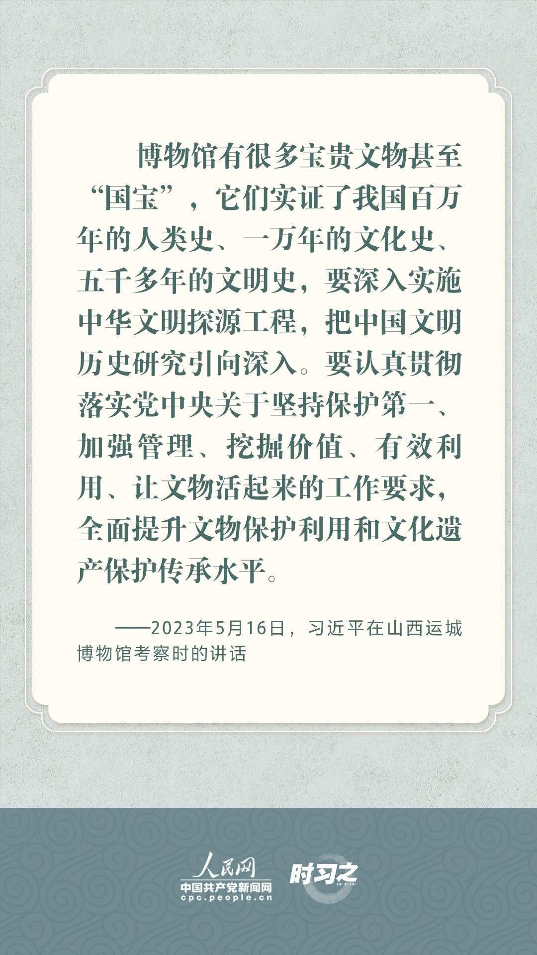 文物承載燦爛文明,傳承歷史文化,維系民族精神。習近平總書記站在中華民族和中華文明永續(xù)傳承的戰(zhàn)略高度,不斷強調保護傳承中華優(yōu)秀傳統(tǒng)文化,為增強文化自信、激發(fā)中華優(yōu)秀傳統(tǒng)文化的生機與活力注入了強大精神動力。