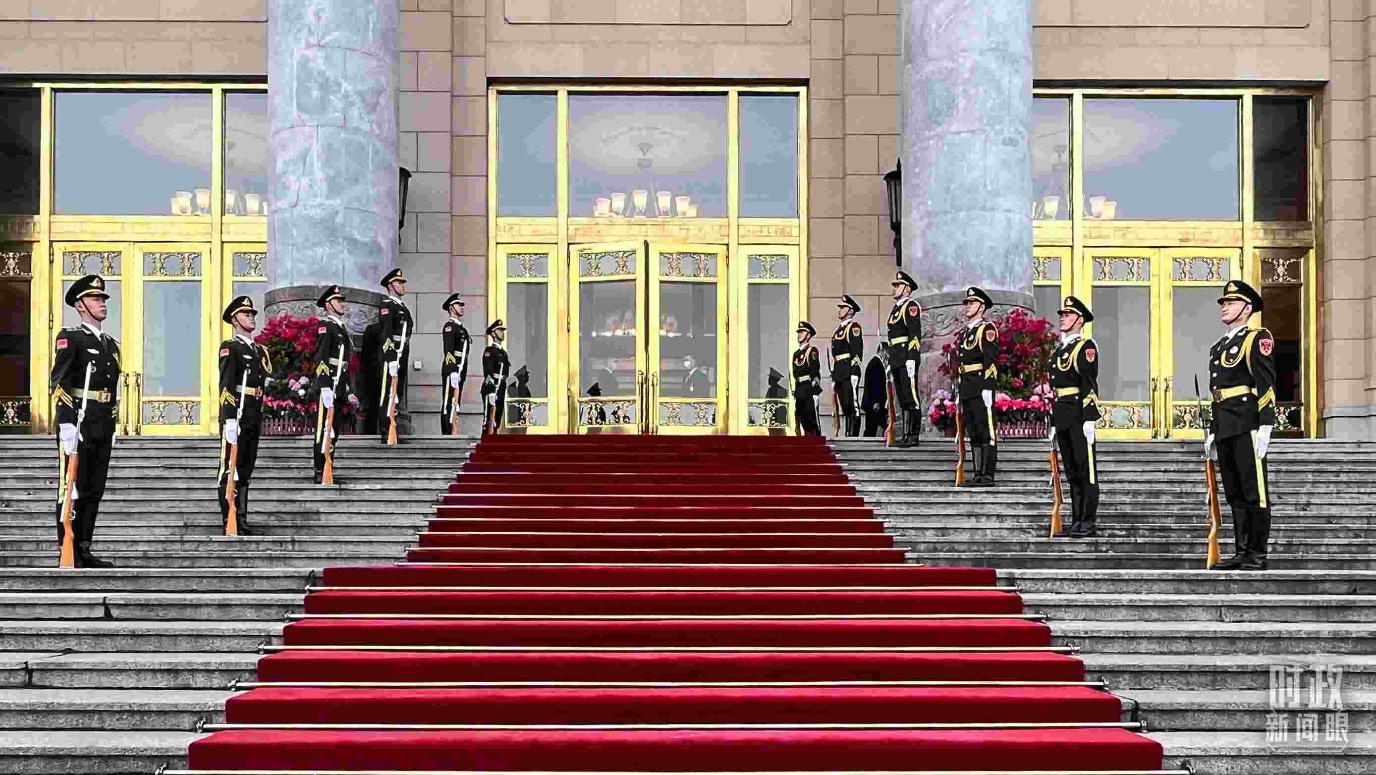 △禮兵列隊(duì)迎接貴賓。(總臺(tái)央視記者張垚拍攝)