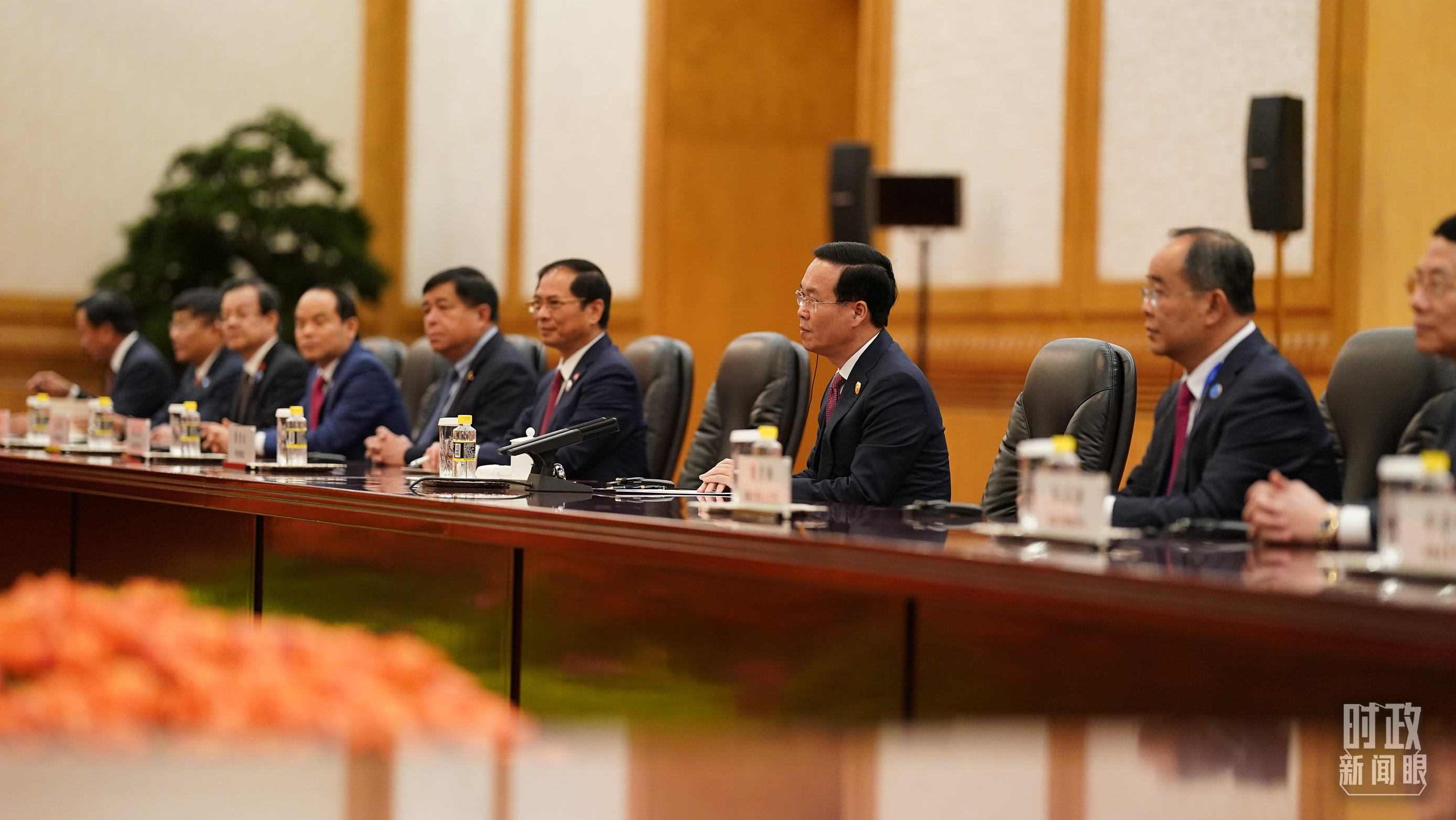 △中越兩國(guó)領(lǐng)導(dǎo)人會(huì)見現(xiàn)場(chǎng)。(總臺(tái)國(guó)廣記者李晉拍攝)