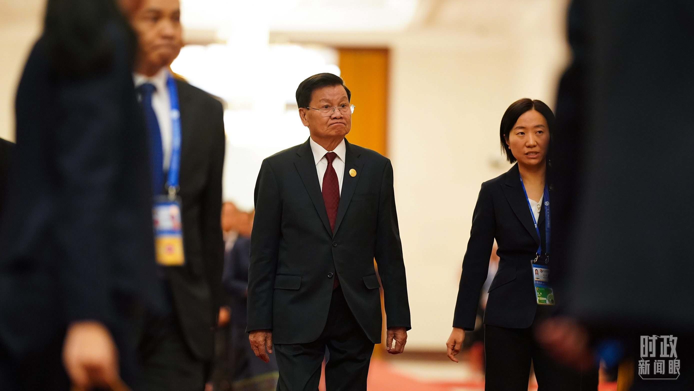 △老撾人民革命黨中央總書記、國(guó)家主席通倫走向會(huì)見廳。(總臺(tái)國(guó)廣記者李晉拍攝)