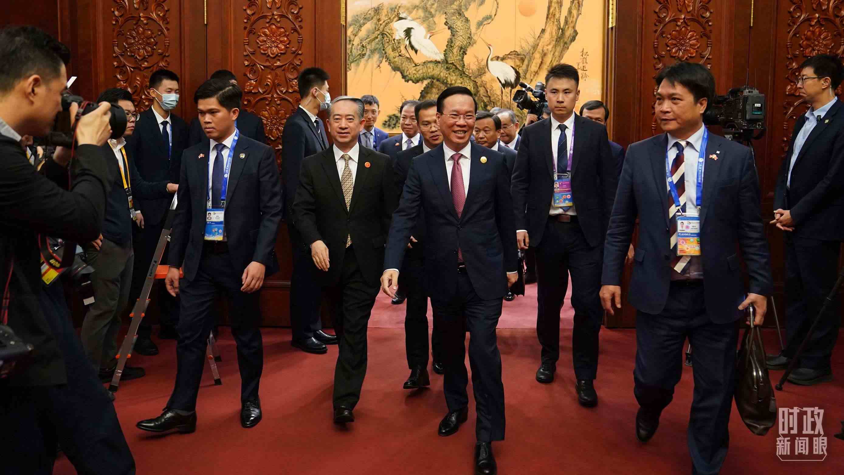 △越南國(guó)家主席武文賞走出會(huì)見廳。(總臺(tái)國(guó)廣記者李晉拍攝)