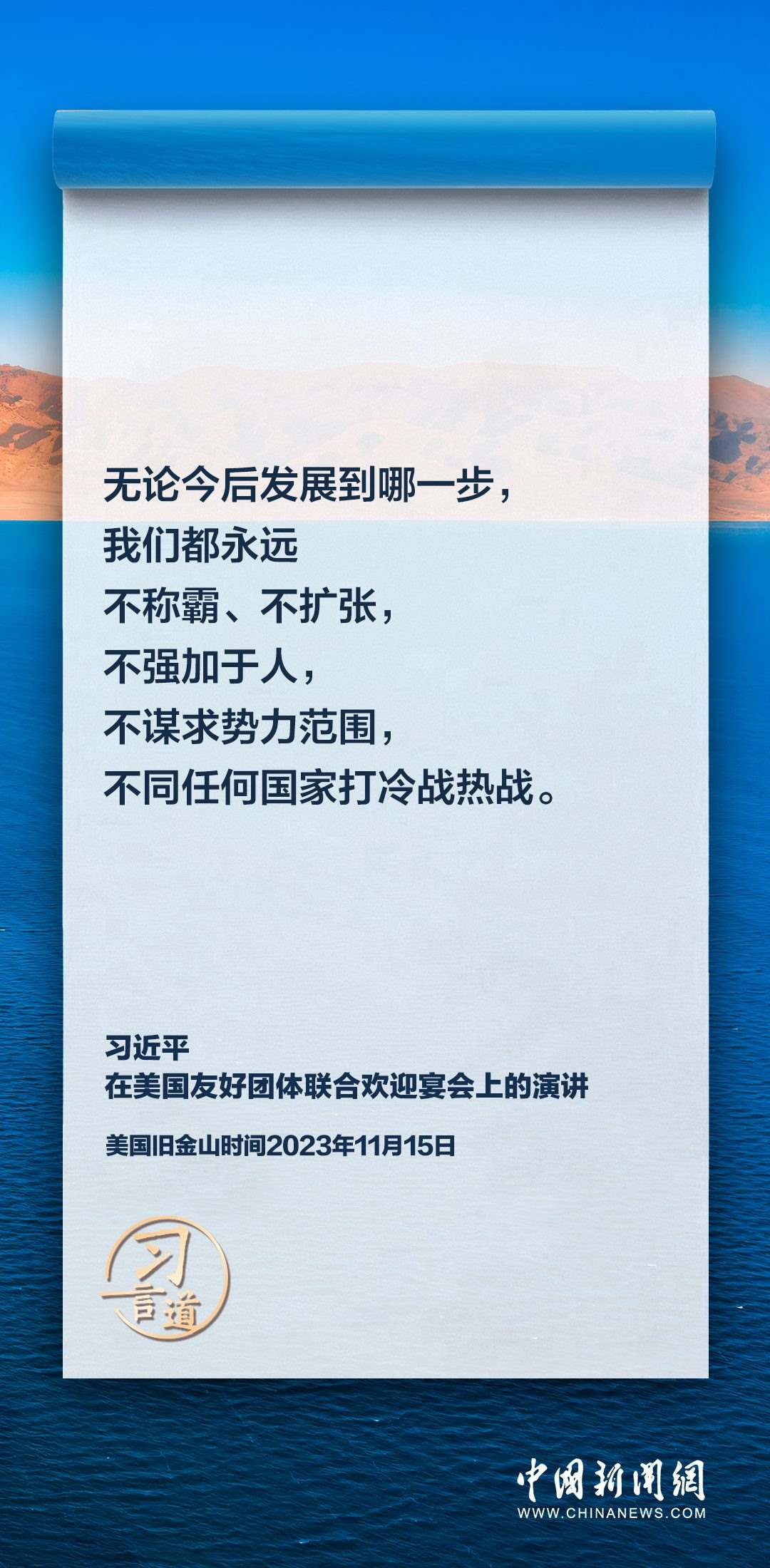 當(dāng)?shù)貢r(shí)間11月15日,中國國家主席習(xí)近平在美國舊金山出席美國友好團(tuán)體聯(lián)合歡迎宴會并發(fā)表演講。習(xí)近平在演講中從“我”和“我們”說起,提出中國主張、表明中國立場、展現(xiàn)大國擔(dān)當(dāng),話語擲地有聲。