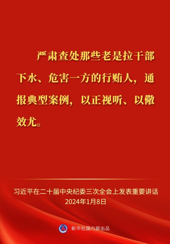 ??中共中央總書記、國家主席、中央軍委主席習(xí)近平8日上午在中國共產(chǎn)黨第二十屆中央紀(jì)律檢查委員會第三次全體會議上發(fā)表重要講話,一起來看金句。