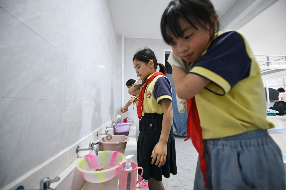 5月30日,學(xué)生在宿舍內(nèi)洗漱。