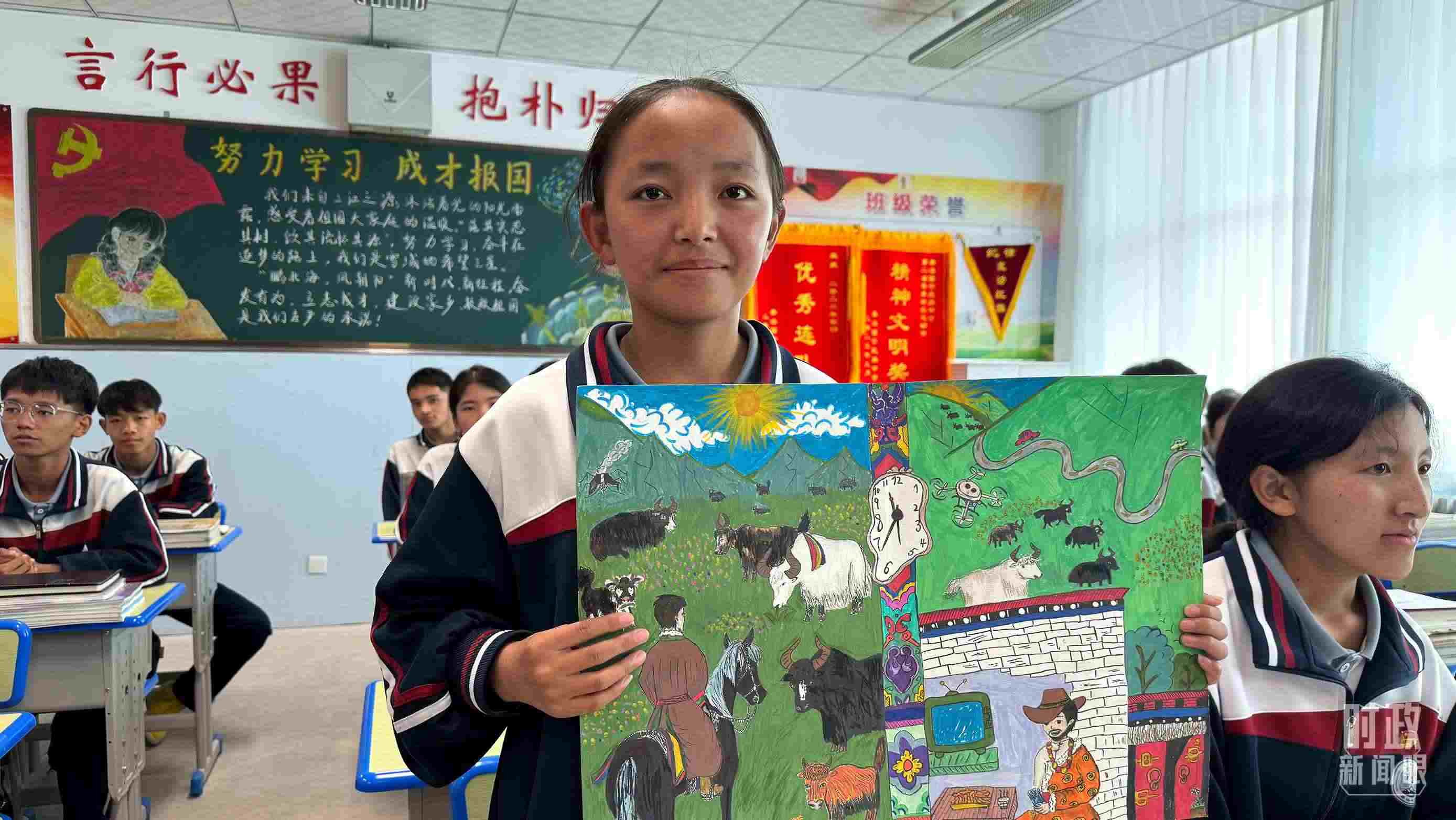 △果洛西寧民族中學高一(1)班的“新時代、新家鄉(xiāng)”主題思政課。(總臺央視記者許永松、國廣記者李晉拍攝)