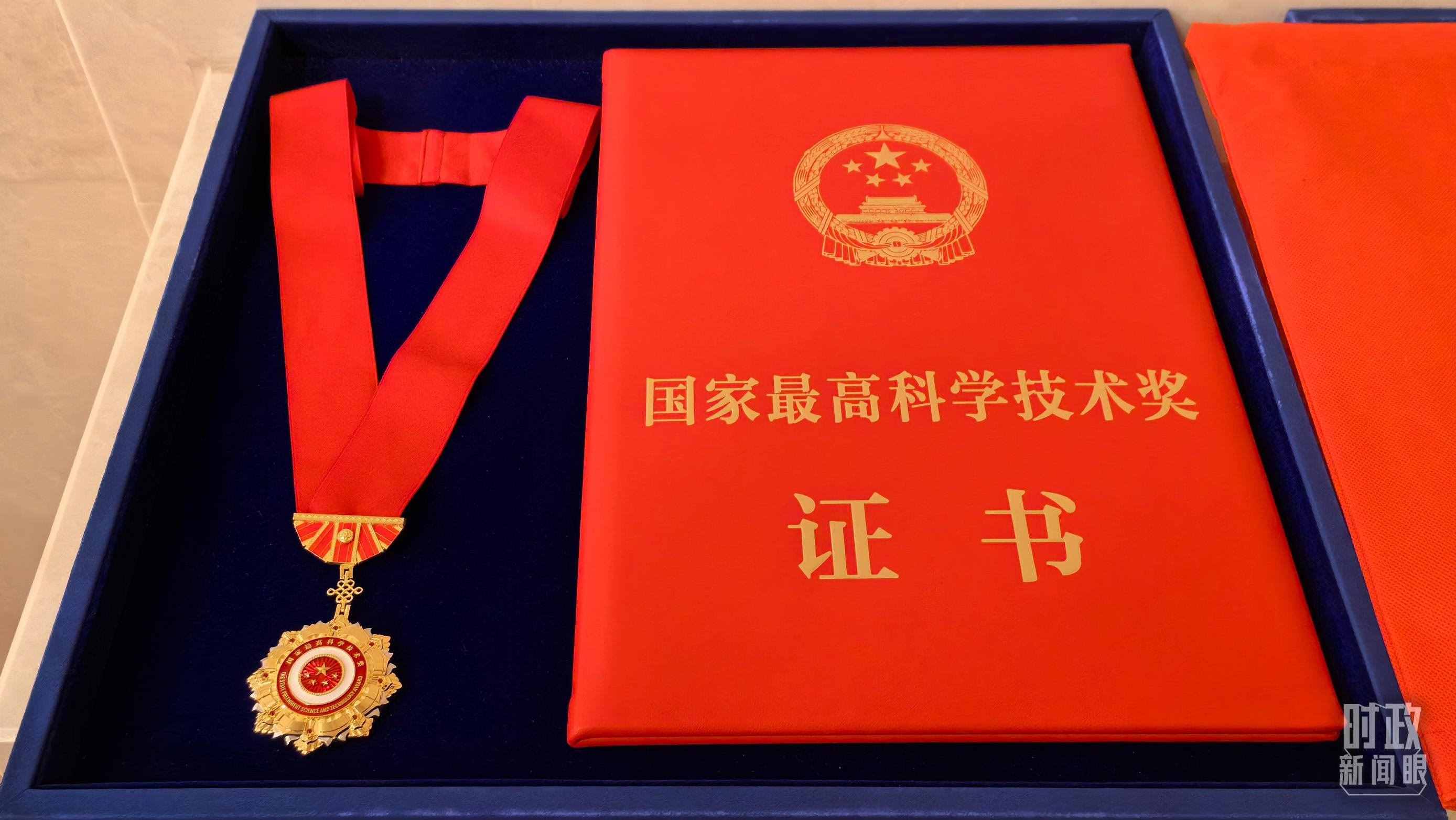 △國家最高科學(xué)技術(shù)獎(jiǎng)獎(jiǎng)?wù)潞妥C書。(總臺(tái)央視記者李錚拍攝)