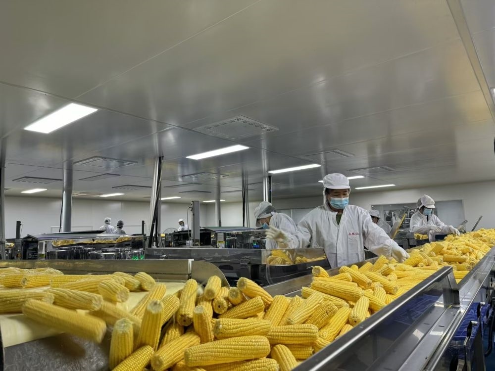 合作社開辦的鮮食玉米加工車間中,收獲的玉米經(jīng)過脫皮、挑選運送到車間,再經(jīng)過清洗、蒸煮、包裝等環(huán)節(jié),做成鮮食玉米銷往全國各地。