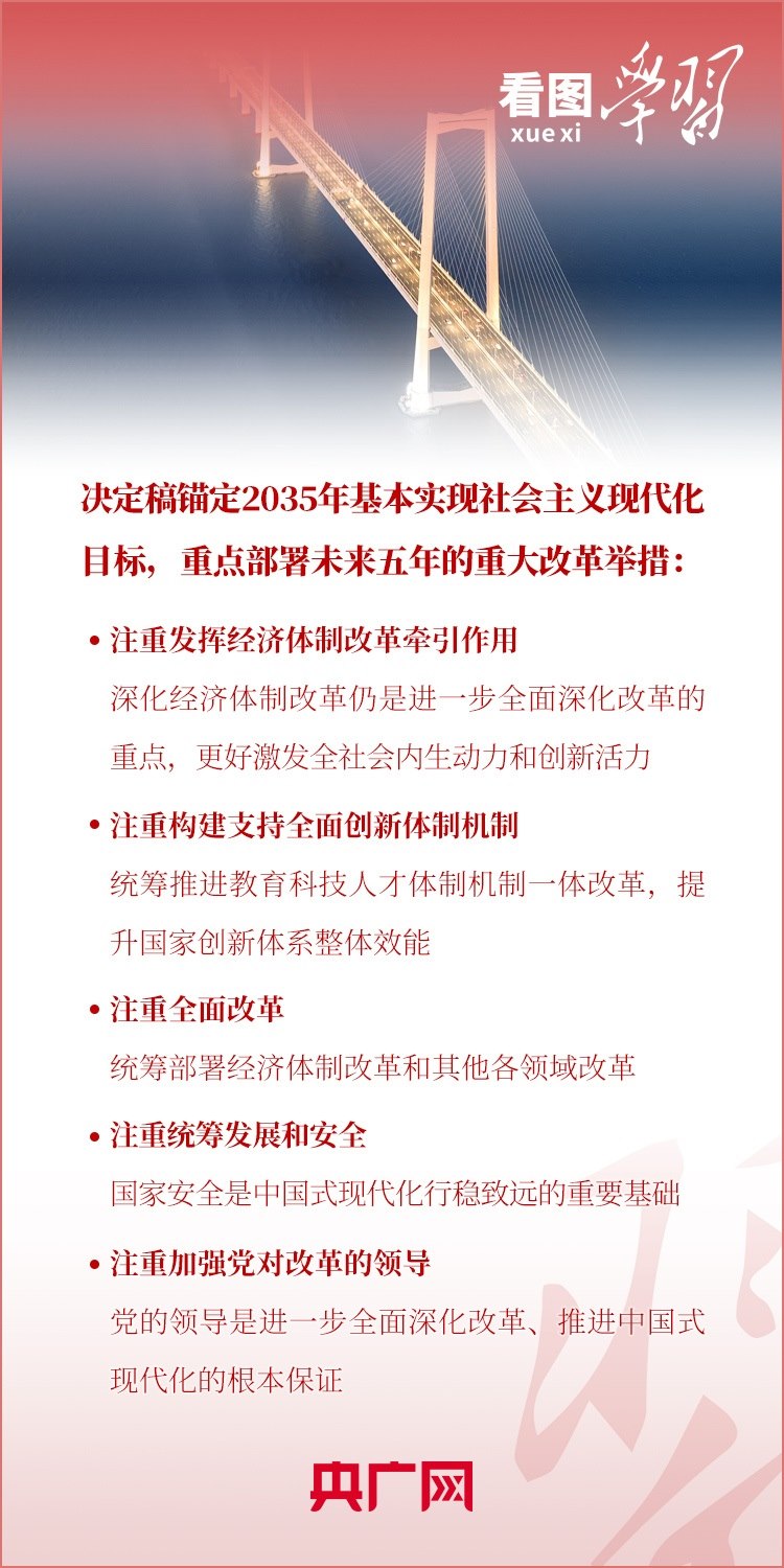 從征求和確定全會(huì)議題到起草文件、深入調(diào)查研究、廣泛征求意見、開展專題論證、反復(fù)討論修改,習(xí)近平總書記指出,決定稿錨定2035年基本實(shí)現(xiàn)社會(huì)主義現(xiàn)代化目標(biāo),重點(diǎn)部署未來五年的重大改革舉措。“五個(gè)注重”成為《決定》內(nèi)容擺布鮮明特點(diǎn)。一起來學(xué)習(xí)!