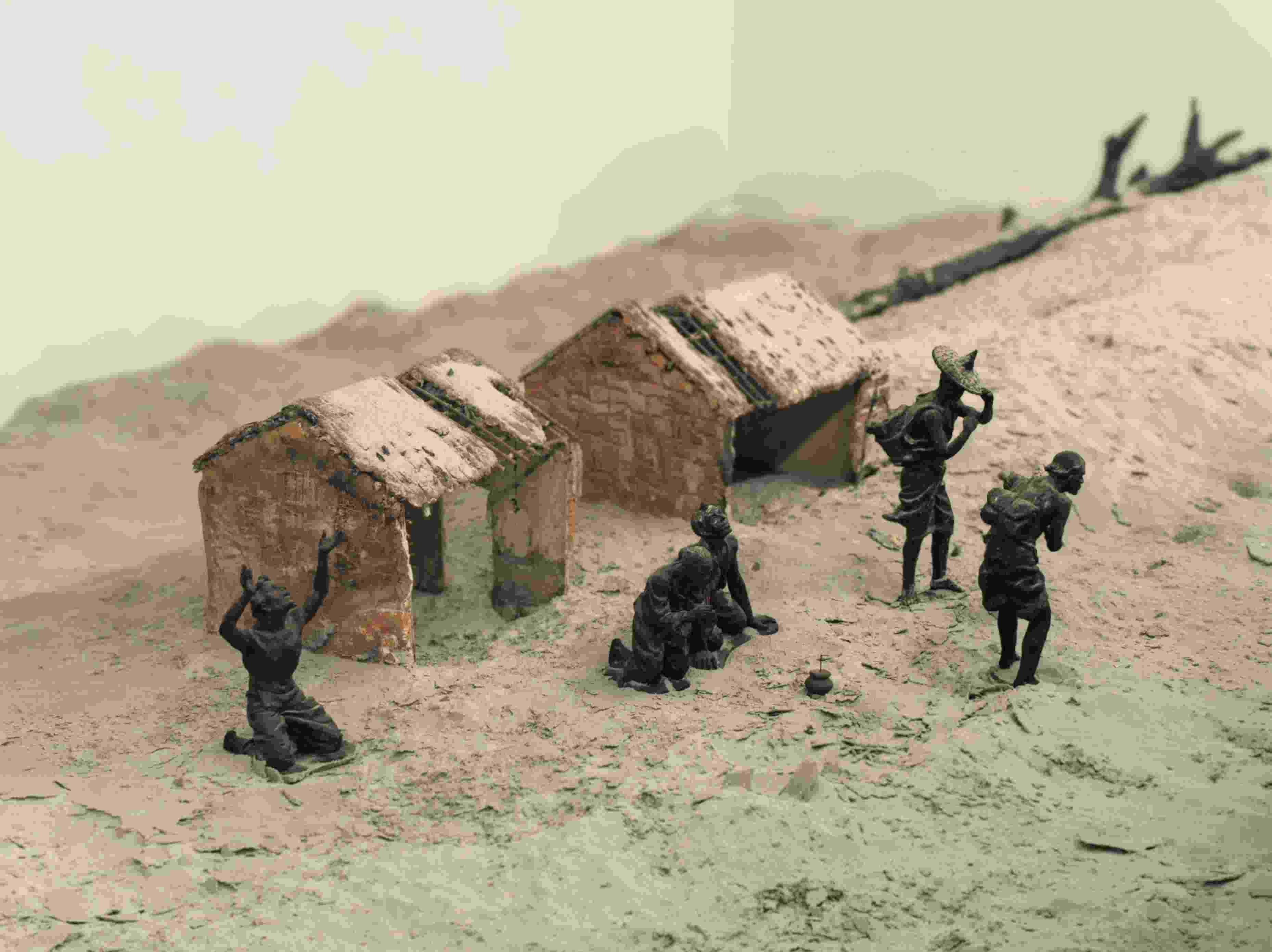 △谷文昌紀念館里展示的當年東山人民飽受風(fēng)沙災(zāi)害之苦的情景。(總臺央廣記者潘毅拍攝)