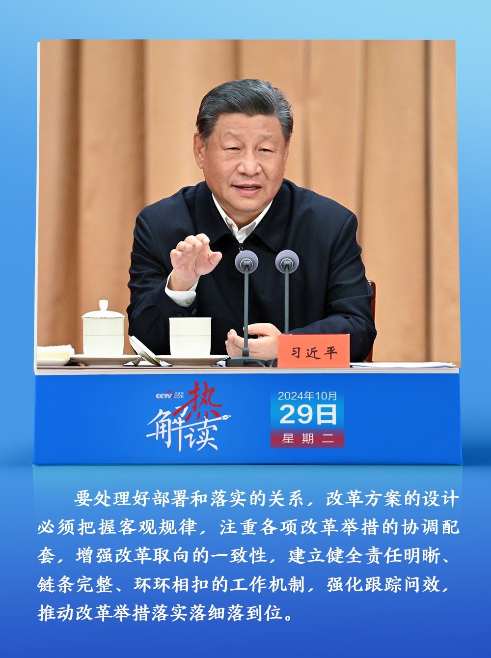 10月29日,省部級主要領(lǐng)導(dǎo)干部學(xué)習(xí)貫徹黨的二十屆三中全會精神專題研討班開班。在開班式上,習(xí)近平總書記明確提出要“處理好部署和落實(shí)的關(guān)系”,“建立健全責(zé)任明晰、鏈條完整、環(huán)環(huán)相扣的工作機(jī)制,強(qiáng)化跟蹤問效,推動改革舉措落實(shí)落細(xì)落到位”。