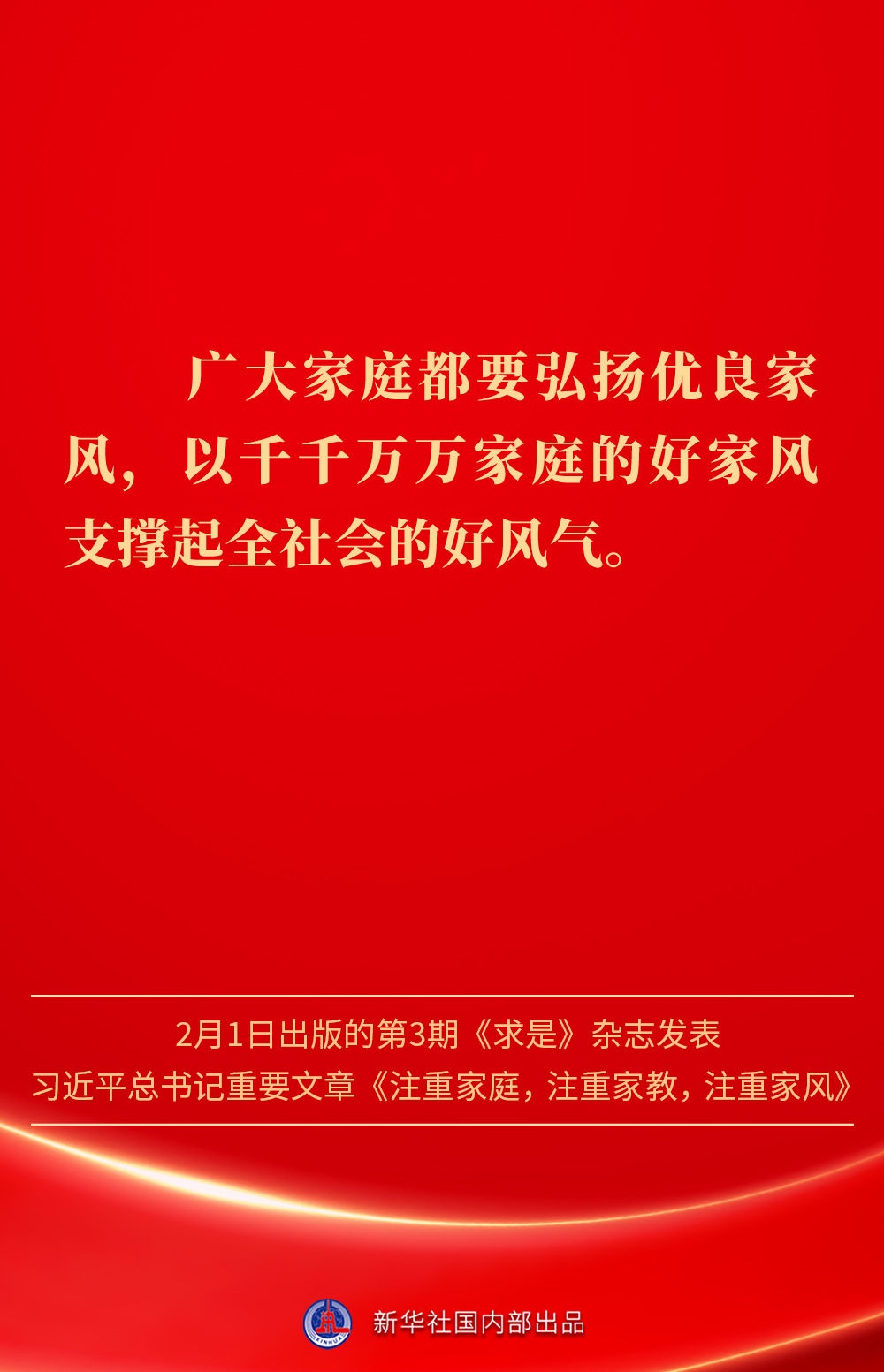 萬(wàn)家團(tuán)圓共慶新春佳節(jié)之際,2月1日出版的第3期《求是》雜志發(fā)表習(xí)近平總書記重要文章《注重家庭,注重家教,注重家風(fēng)》。為什么要注重家庭、家教、家風(fēng)?如何做好家庭文明建設(shè)?習(xí)近平總書記這樣闡述——
