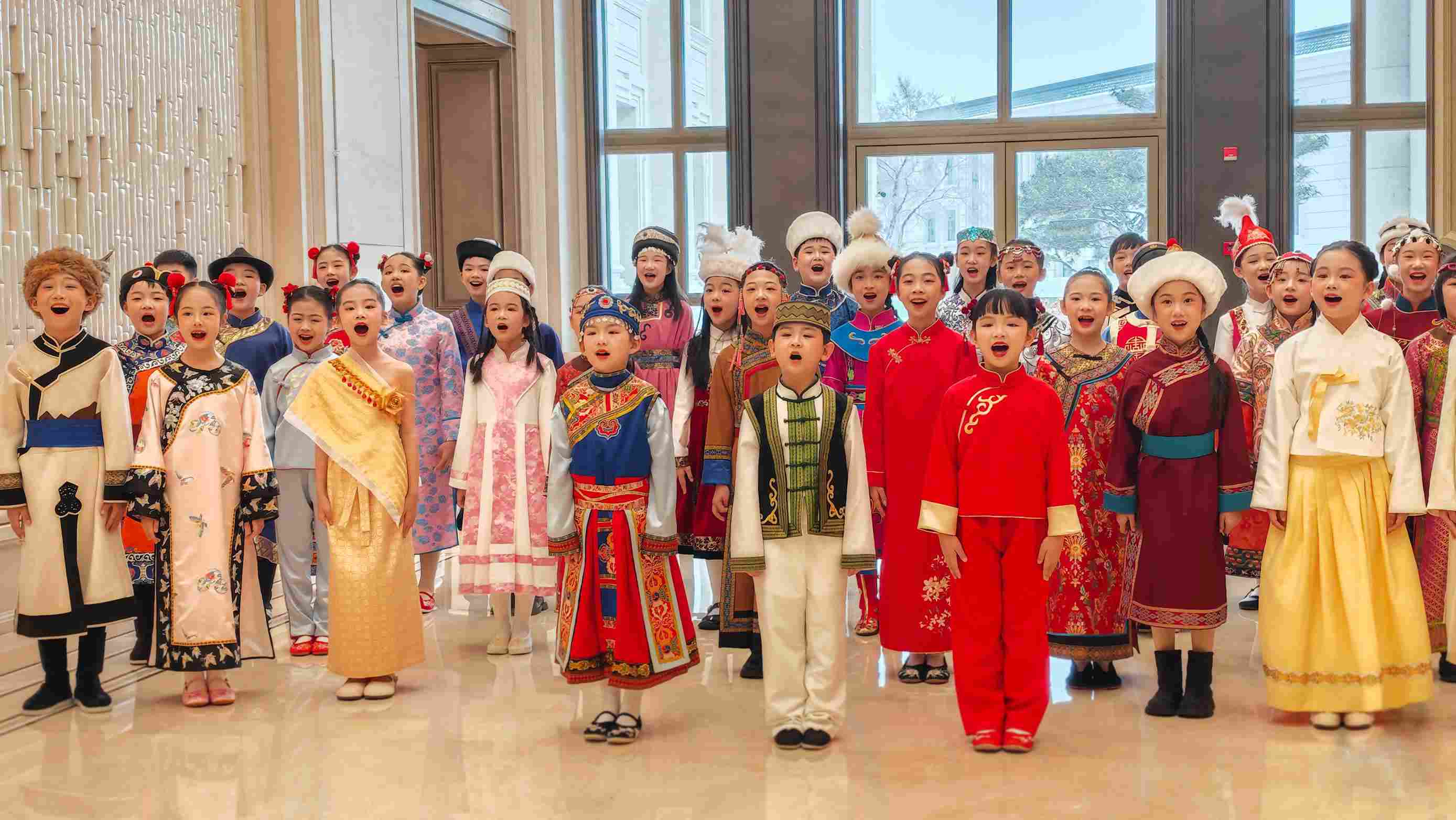 △第九屆亞冬會(huì)開(kāi)幕式歡迎宴會(huì)現(xiàn)場(chǎng),少年兒童表演民歌《烏蘇里船歌》。