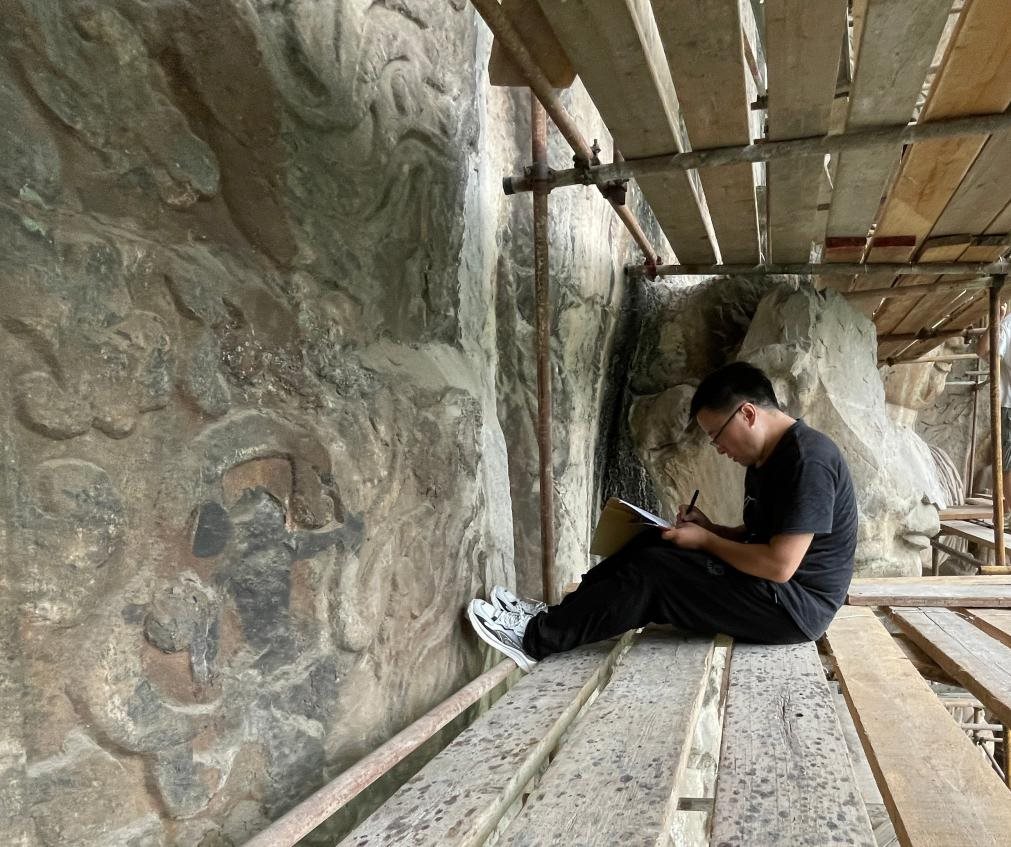 谷宏耀在龍門(mén)石窟進(jìn)行考古調(diào)查。(受訪者供圖)
