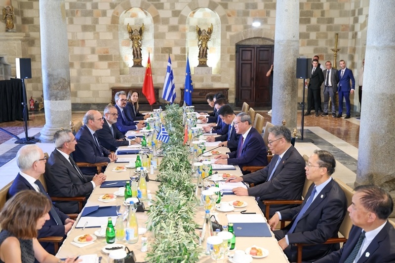 李強(qiáng)指出,中方愿同希方拉緊合作紐帶,更好發(fā)揮互補(bǔ)優(yōu)勢,高質(zhì)量推進(jìn)比雷埃夫斯港總規(guī)劃落地,推動兩國貿(mào)易更加優(yōu)化平衡發(fā)展,加強(qiáng)在清潔能源、輸變電、人工智能等領(lǐng)域合作,培育更多經(jīng)濟(jì)新增長點。中方支持和鼓勵更多有實力的中國企業(yè)根據(jù)市場原則,積極推進(jìn)對希臘投資。雙方要加強(qiáng)文明互鑒,密切旅游等人文交流,增進(jìn)兩國人民友好。中歐之間有著廣泛的共同利益。當(dāng)前全球單邊主義、保護(hù)主義愈演愈烈,中歐應(yīng)共同發(fā)出倡導(dǎo)多邊主義和自由貿(mào)易的積極聲音,攜手維護(hù)經(jīng)濟(jì)全球化和國際經(jīng)貿(mào)秩序。希望希臘繼續(xù)為推進(jìn)中歐關(guān)系發(fā)展發(fā)揮建設(shè)性作用。