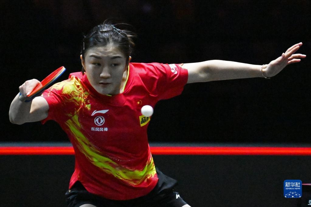 3月13日,陳夢在比賽中回球。新華社發(fā)(鄧智煒攝)