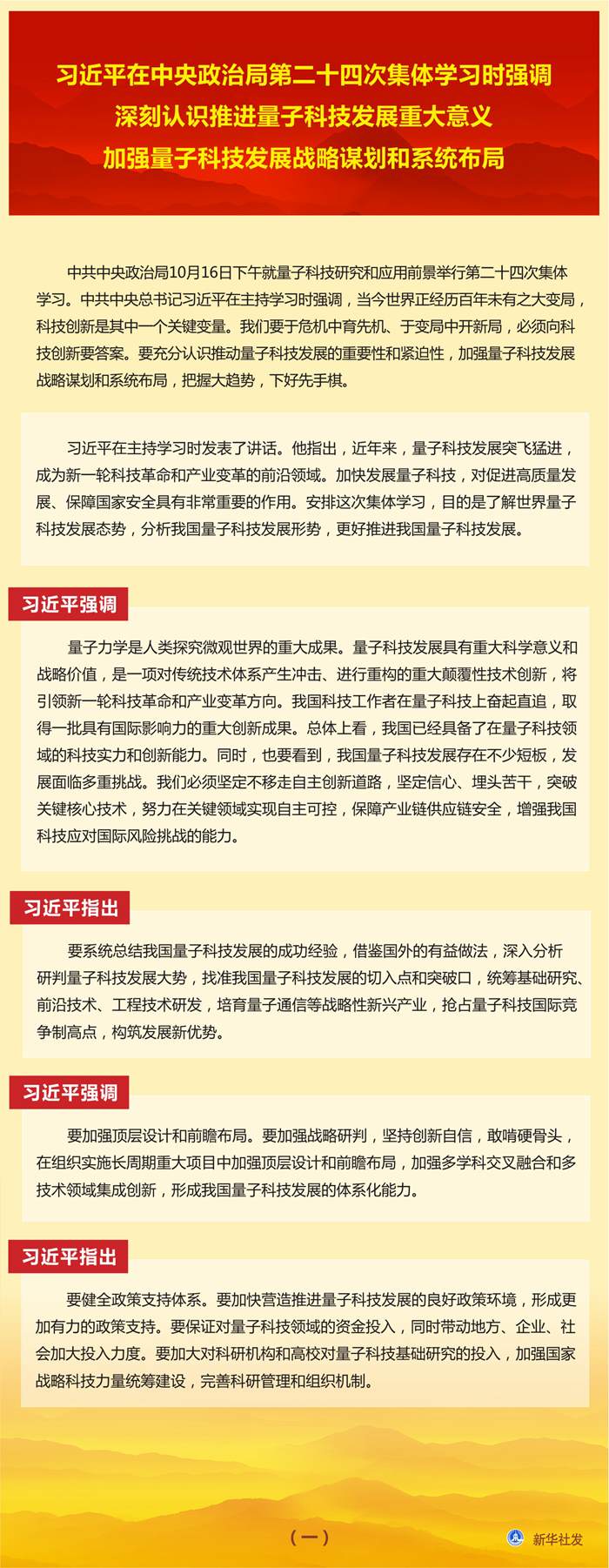 習近平在中央政治局第二十四次集體學習時強調 深刻認識推進量子科技發(fā)展重大意義 加強量子科技發(fā)展戰(zhàn)略謀劃和系統(tǒng)布局