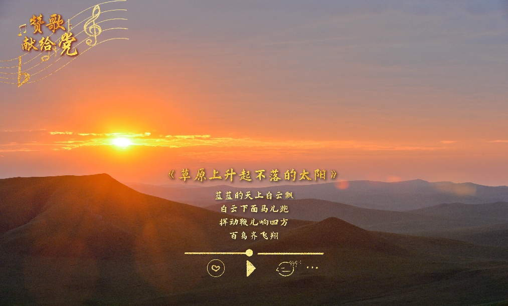 《草原上升起不落的太陽》創(chuàng)作于1952年,出自蒙古族小伙子的一份作業(yè)。當(dāng)時,中央音樂學(xué)院的學(xué)生都要創(chuàng)作一首歌曲,作為結(jié)業(yè)作品。蒙古族青年美麗其格想到了家鄉(xiāng)美麗的草原,想到了共產(chǎn)黨帶來的新生活……他傾注了全部感情,創(chuàng)作了《草原上升起不落的太陽》。