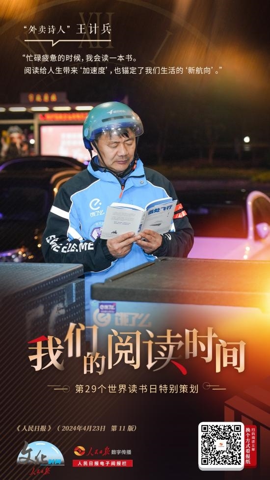 “我的外賣箱里總會(huì)放一本書(shū),在等外賣的間隙或者訂單空閑的時(shí)候看,現(xiàn)在主要在手機(jī)上閱讀?!比缃?,王計(jì)兵已創(chuàng)作5000多首詩(shī)歌,出版3本詩(shī)集,還在進(jìn)行非虛構(gòu)寫(xiě)作。他說(shuō):“閱讀給我的人生帶來(lái)‘加速度’,為忙碌的生活錨定方向感?!?/p>