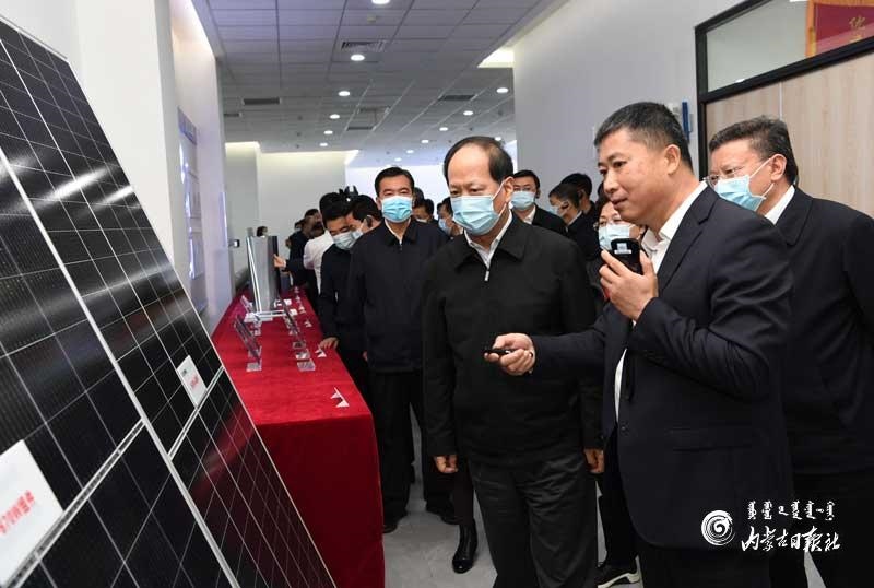 4月21日,自治區(qū)黨委書(shū)記、人大常委會(huì)主任石泰峰,與參加自治區(qū)推動(dòng)高質(zhì)量發(fā)展重大項(xiàng)目建設(shè)動(dòng)員大會(huì)的代表一起觀摩弘元新材料(包頭)有限公司單晶、切片項(xiàng)目產(chǎn)品。內(nèi)蒙古日?qǐng)?bào)社融媒體記者 袁永紅 攝
