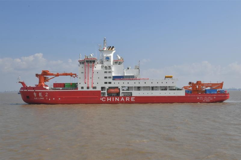 “雪龍2”號總長約122米,寬約22米,設(shè)計排水量近1.4萬噸,續(xù)航力達到2萬海里,是中國第一艘自主建造的極地科學(xué)考察破冰船,也是世界上首艘具備雙向破冰能力的破冰船。