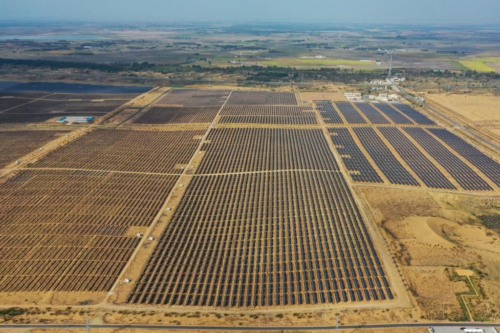 達拉特旗光伏發(fā)電應用領跑基地(無人機照片)。新華社記者 李志鵬攝