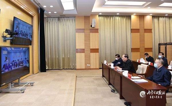 10月24日,自治區(qū)黨委書記、人大常委會主任石泰峰來到自治區(qū)疫情防控工作指揮部與二連浩特市視頻連線,了解應(yīng)對處置新冠肺炎疫情工作情況。內(nèi)蒙古日報(bào)社融媒體記者袁永紅攝