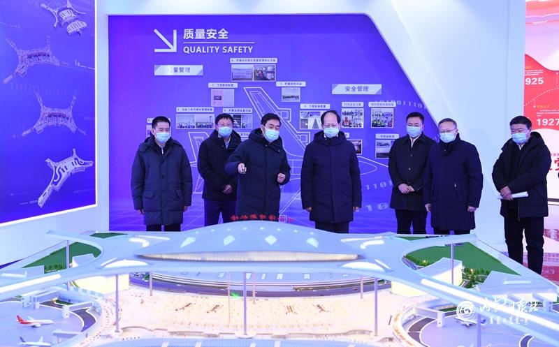 呼和浩特新機場項目是國家和自治區(qū)規(guī)劃的重點項目,石泰峰非常關(guān)注項目推進(jìn)情況。他首先來到新機場智慧展廳,認(rèn)真聽取新機場項目總體情況和主體工程建設(shè)情況介紹。他指出,呼和浩特新機場建設(shè)事關(guān)首府經(jīng)濟社會高質(zhì)量發(fā)展,事關(guān)內(nèi)蒙古開放發(fā)展,是一項具有重大戰(zhàn)略意義的標(biāo)志性工程。各有關(guān)方面特別是呼和浩特市委和政府要切實增強責(zé)任感和緊迫感,積極作為、狠抓落實,強化要素保障,及時跟進(jìn)服務(wù),全力以赴把新機場建設(shè)好、管理好、運營好,促進(jìn)內(nèi)蒙古更好服務(wù)和融入新發(fā)展格局。