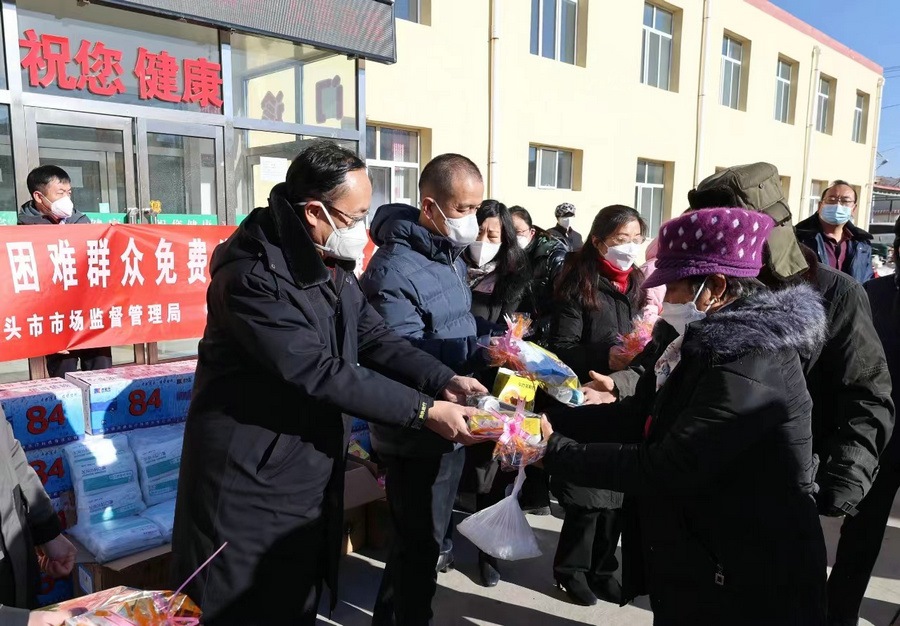 包頭市市場(chǎng)監(jiān)督管理局急困難群眾用藥之所急,解困難群眾用藥之所盼,組織10個(gè)旗縣區(qū)市場(chǎng)監(jiān)管部門發(fā)揮職能作用,協(xié)調(diào)全市各藥品經(jīng)營企業(yè)踴躍承擔(dān)社會(huì)責(zé)任,千方百計(jì)籌措當(dāng)前防疫緊缺藥械,為全市近2萬名農(nóng)村牧區(qū)群眾送去防疫藥械愛心包,有效地緩解了包頭市農(nóng)村牧區(qū)困難群眾購藥遠(yuǎn)、購藥難的實(shí)際問題。