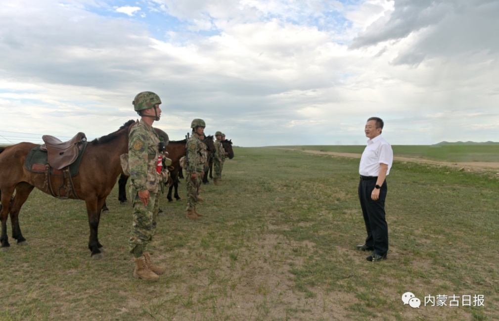 8月14日,自治區(qū)黨委書記孫紹騁在東烏珠穆沁旗邊防某旅調(diào)研邊境管控和部隊建設(shè)工作情況。內(nèi)蒙古日報社融媒體記者 馬建荃 攝
