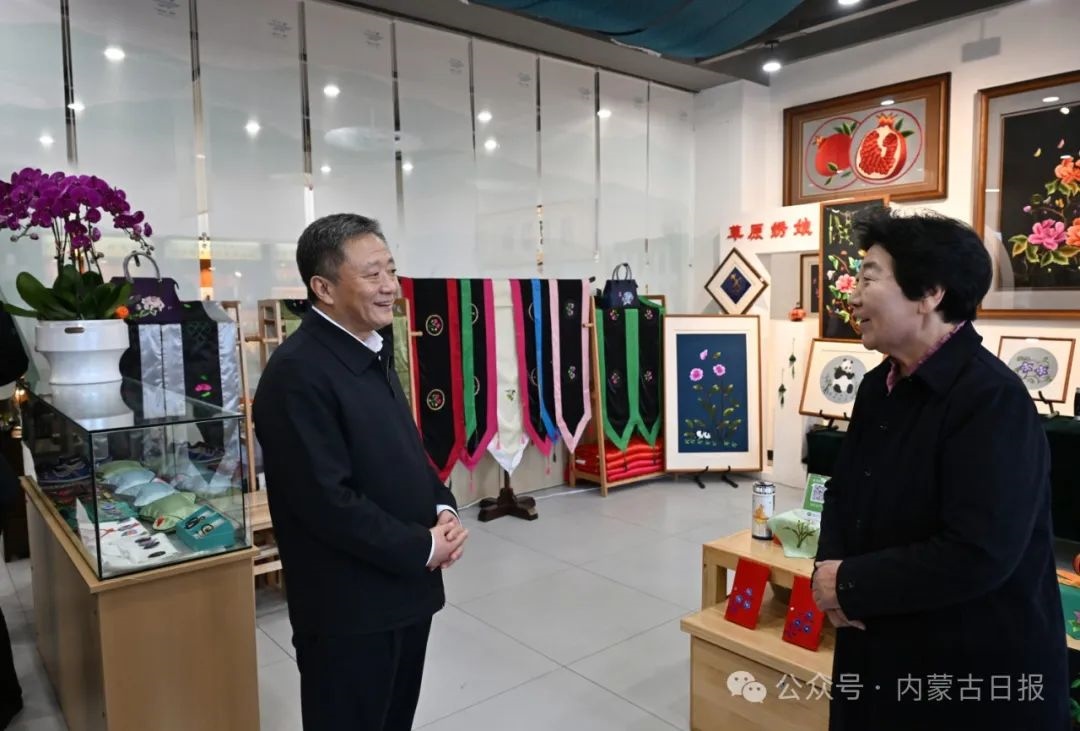 1月21日,自治區(qū)黨委書(shū)記孫紹騁在興安領(lǐng)創(chuàng)中心看望全國(guó)脫貧攻堅(jiān)楷模白晶瑩。草原全媒?內(nèi)蒙古新聞網(wǎng)記者馬建荃攝