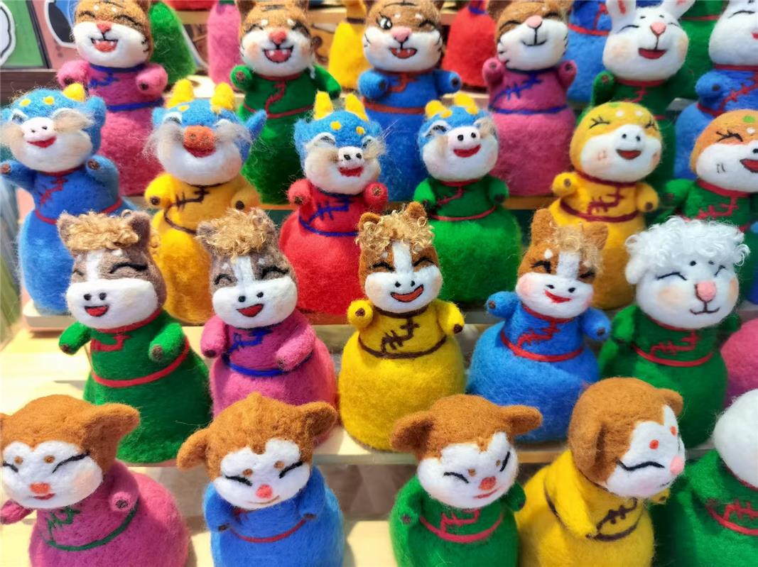 在呼和浩特市回民區(qū)寬巷子的一家非遺手作店內(nèi),來自青島的游客王藝女士,被展臺(tái)上憨態(tài)可掬的十二生肖蒙古族氈繡擺件深深吸引?!斑@些小動(dòng)物太可愛了,每一個(gè)都自帶草原的靈氣!”她告訴記者,一定要把這份來自草原的心意,當(dāng)作新年禮物帶回青島送給家人?! ?/p>
