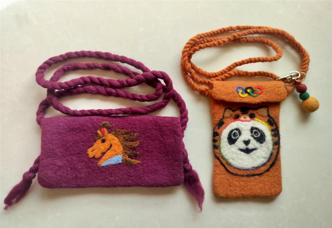 這套擺件采用的蒙古族氈繡技藝是國(guó)家級(jí)非物質(zhì)文化遺產(chǎn),多以駝絨、羊毛、馬鬃為原料,以縫制、壓邊等手法繡于毛氈之上,成品兼具實(shí)用性與藝術(shù)性。近年來,該技藝衍生出冰箱貼、擺件、杯墊、背包等精致便攜的文創(chuàng)產(chǎn)品,讓古老技藝在新時(shí)代煥發(fā)勃勃生機(jī)。