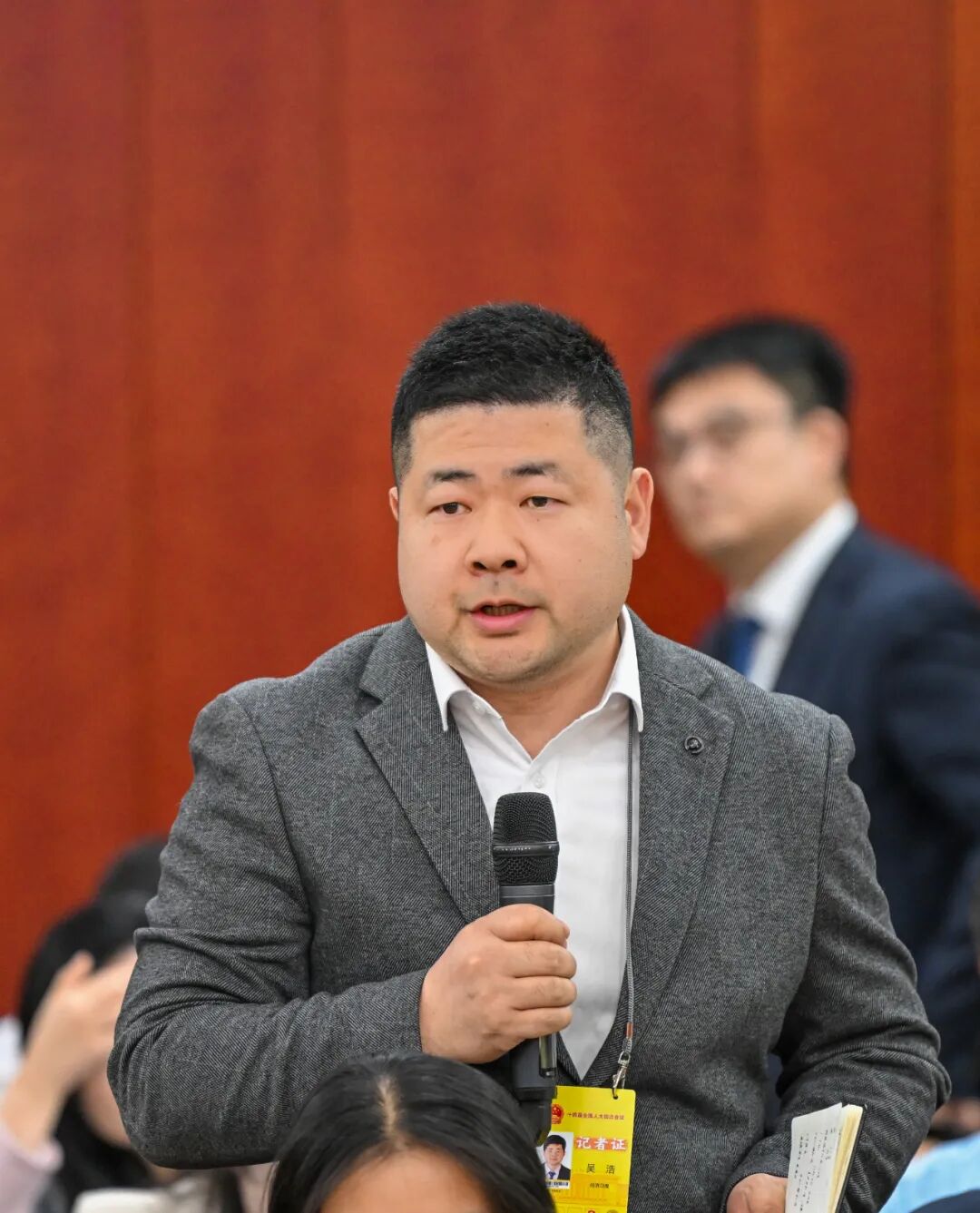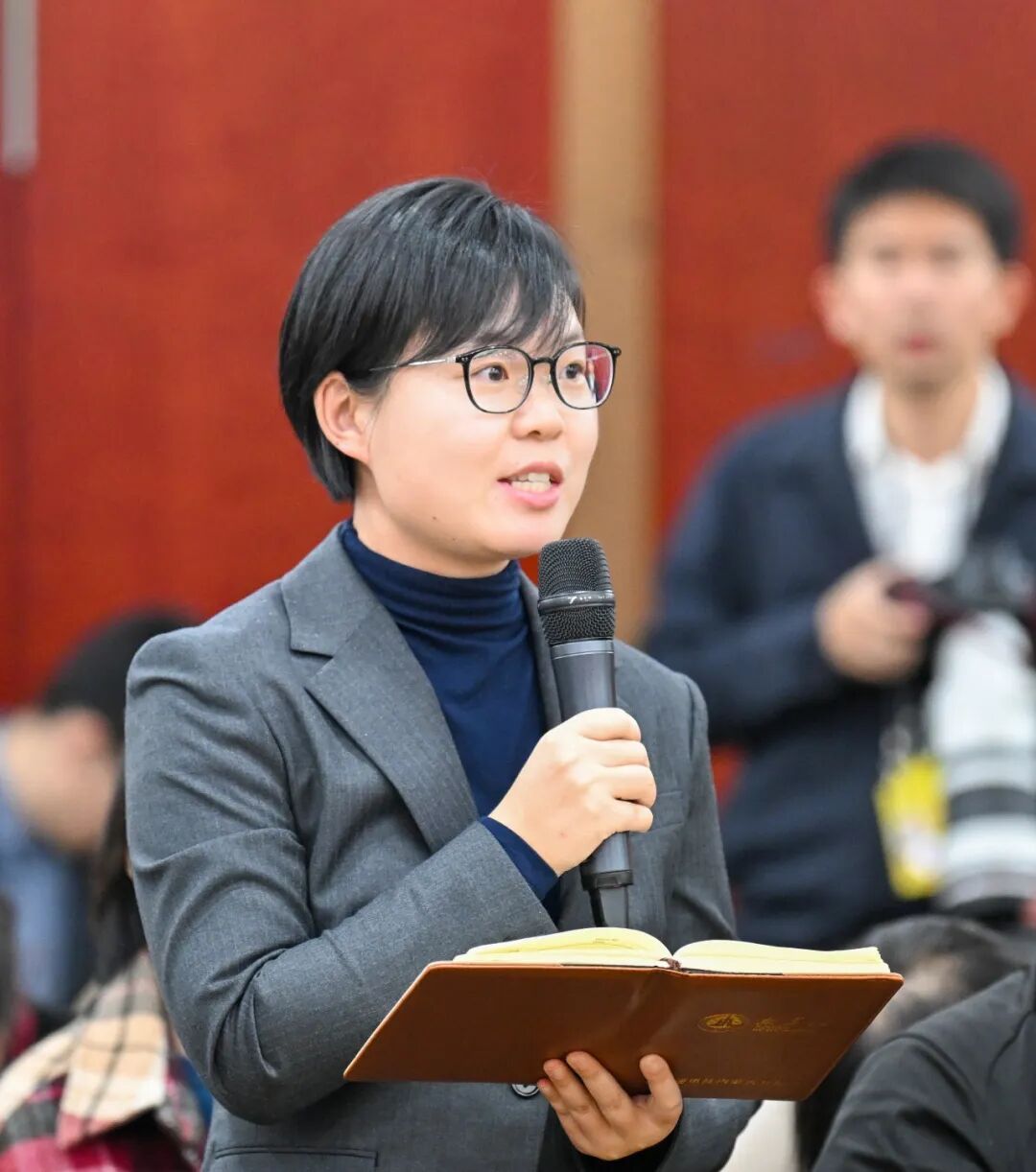內(nèi)蒙古代表團(tuán)開放團(tuán)組活動(dòng)現(xiàn)場(chǎng),記者們架起“長(zhǎng)槍短炮”,現(xiàn)場(chǎng)快門聲此起彼伏。