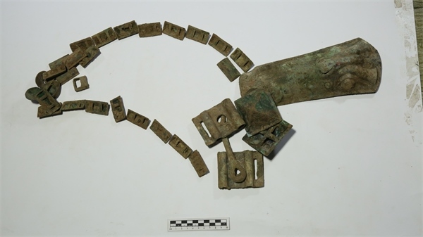 欒城周家莊遺址為一處晚商時期墓地,發(fā)現(xiàn)17座墓葬,其中2座為帶墓道的“甲”字形大墓。墓葬可分為西、中、東三組,普遍有殉狗,少量殉人,大型墓葬居中,小型墓葬分居兩側(cè),形成以大墓為中心的布局。