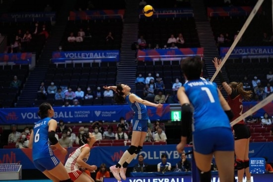 當(dāng)日,在日本名古屋舉行的2023世界女排聯(lián)賽分站賽中,中國隊以3比0戰(zhàn)勝德國隊。