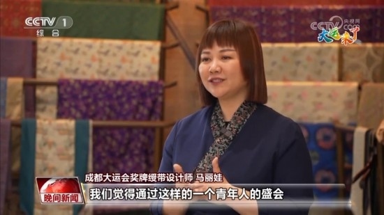 成都大運會獎牌綬帶設計師 馬麗娃:這個體育賽事其實是一個橋梁,通過這樣一個青年人的盛會,把我們的優(yōu)秀傳統文化用肉眼可見的形式傳遞出去,我覺得這是非常棒的一種形式。