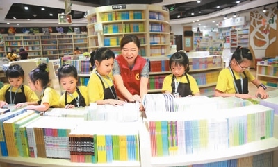 7月18日,來自重慶市沙坪壩區(qū)的20名小學(xué)生走進重慶新華書店沙坪壩書城,化身“小小圖書管理員”,參加勞動職業(yè)體驗活動。趙杰昌攝(人民圖片)