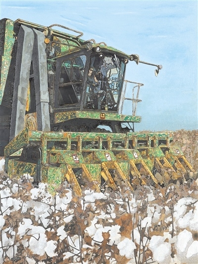 漆畫《中國(guó)棉花》,作者孫思?jí)簟?/p>