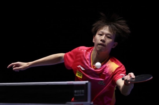 2月18日,中國隊球員林高遠在比賽中回球。新華社記者 張濤 攝